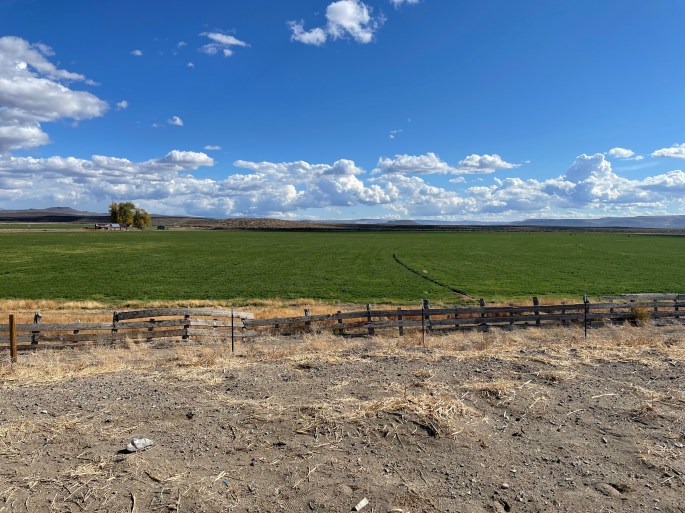 We arrived at the ranch where Wesley was going to hunt. I am just amazed at how you can be in the middle of all the sage brush and it is a beautiful ranch. My family and I have talked a lot about how the sage brush is deceiving to people driving by. We pulled in and there was beautiful alfalfa fields, cows grazing in the stubble and a nice resting area.