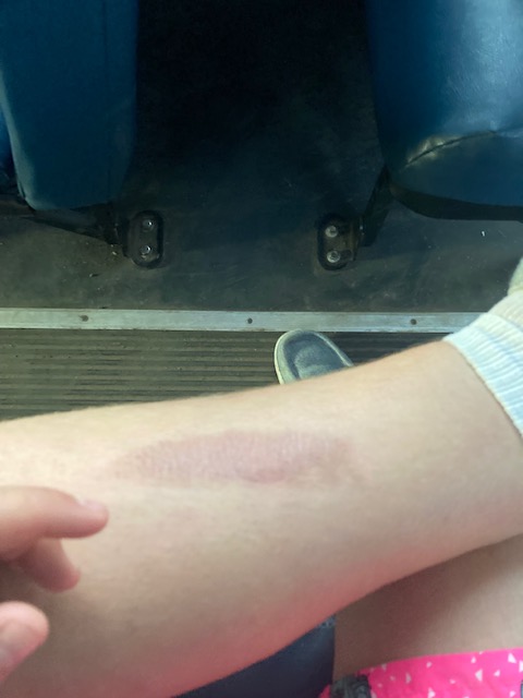 When he came and told us that he burned himself. I didn’t hear the part about the burn. I thought he had scratched it on the kickstand. OOPS!! Bad me!! We finished unloading a pickup load of wood before we figured out that it was a burn. We quickly went in the house and to work on cleaning it up and wrapping it.